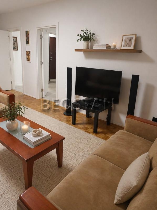 - Dve spavaće sobe. - Terasa. - Komforan dnevni boravak. • - Uredna i čista zgrada. - Lift. • - EG. - Infostan - 2500din. - Struja po potrošnji. • - Odlična lokacija. - Dobra povezanost sa svim delovima grada. -Nalazi se izmedju BEO shopping centra i Aviv parka. - Autobuska I tramvajska stajališta u blizini. • -Postoji mogućnost zakupa garažnog mesta za manji auto u iznosu od 100€. • - Odmah useljiv. - Depozit. • PROSTORIJE: ulazni hodnik, dnevni boravak sa kuhinjom i trpezarijom, dve spavaće sobe, kupatilo i terasa. Topla preporuka! Agencijska nadoknada iznosi 50% od prve mesečne zakupnine.