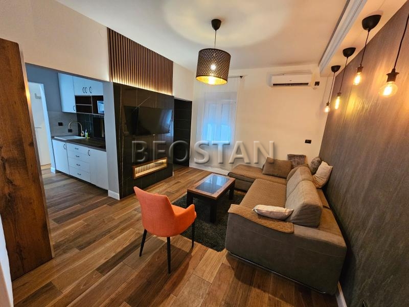 Izdaje se potpuno renoviran i opremljen stan površine 45 m2 u Prizrenskoj ulici, u samom srcu Beograda – strogi centar grada. Struktura stana: -Spavaća soba sa izdvojenim garderoberom i izlaskom na lodju -Dnevni boravak sa modernim šankom i izlaskom na lodju -Kuhinja -Kupatilo -Velika zastakljena lodja koja se prostire celom dužinom stana Stan je kompletno renoviran, moderno opremljen, na centralnoj lokaciji i odmah useljiv. Odlikuje ga funkcionalan raspored i prostrana lodju sa pogledom na “Palatu Albanije”. Posebne pogodnosti: - Zgrada sa liftom - Strogi centar grada - Blizina pešačke zone, Kalemegdana, restorana, kafića i svih važnih gradskih sadržaja - Odlična povezanost gradskim prevozom Cena zakupa: 1.000 EUR mesečno Jedan depozit Idealan za poslovne ljude, par ili strane državljane. Za više informacija i zakazivanje gledanja – stojimo na raspolaganju. ------------------------------------------------------------------------------------------------------------------------------------------ A fully renovated and furnished apartment of 45 m2 for rent in Prizrenska street, in the heart of Belgrade – the strict city center. Apartment structure: -Bedroom with a separate wardrobe and access to the loggia balcony -Living room with a modern kitchen counter and access to the loggia balcony -Kitchen -Bathroom -Large glazed loggia balcony that extends along the entire length of the apartment The apartment is completely renovated, modernly furnished, centrally located, and ready for immediate occupancy. It is characterized by a functional layout and a spacious loggia balcony with a view of the “Palace Albanija”. Special amenities: -Building with an elevator -Strict city center -Proximity to the pedestrian zone, Kalemegdan, restaurants, cafes, and all important city amenities -Excellent connection by public transport Rent price: 1,000 EUR per month One deposit required. Ideal for business people, a couple, or foreign citizens. For more information and to schedule a viewing – we are at your disposal. Agencijska provizija 50%