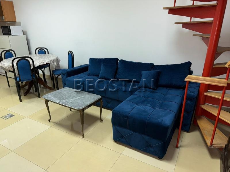 Stan se nalazi u zgradi sa zasebnim ulazom,pogodan za firmu.Duplex,polunamesten,odlična povezanost sa gradskim prevozom.Mesecna kirija 650e i u tu cenu su uračunati računi.Depozit u visini jedne kirije.Stan je odmah useljiv i poželjno bi bilo na duži vremenski period. Agencijska provizija 50%