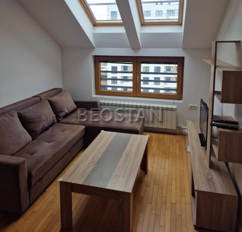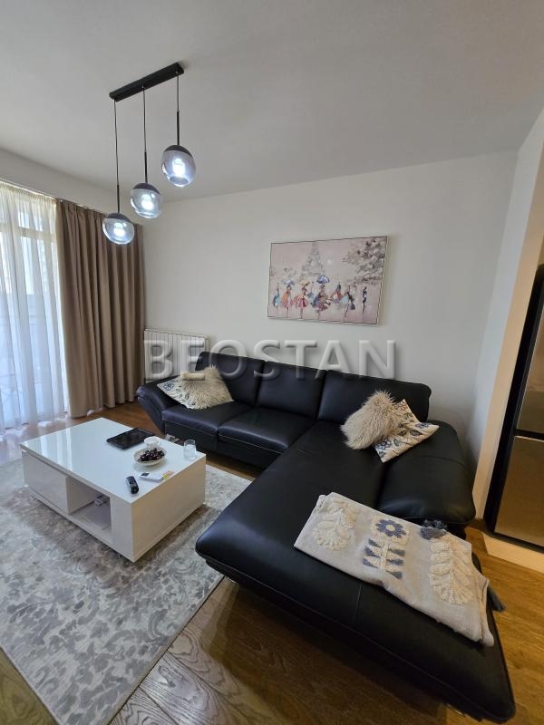 Izdaje se dvosoban namešten stan u novoj zgradi sa kompletno novim nameštajem i belom tehnikom sa posuđem i posteljinom. Stan se sastoji od dnevno trpezarijskog dela, kuhinje, zasebne spavaće sobe, kupatila, predsoblja i terase. Grejanje etažno sa cenom po potrošnji. Stan se nalazi između Cvetkove pijace i novog BEO TC blizu mnogih tramvajskih trolejbuskih i autobuskih linija. Parkiranje bez zone u ulici. Male režije, klima. Wifi i kablovska televizija. Agencijska provizija 50% od prve zakupnine.