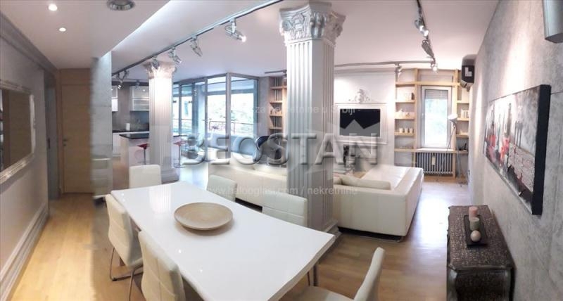 Ekskluzivan, kompletno renoviran salonski duplex u jednoj od najlepših i najmirnijih ulica u centru grada. Stan se prostire na dva nivoa i poseduje privatnu, uređenu baštu od 3 ara, kroz koju postoji direktan ulaz. Ambijent bašte, popločane prirodnim kamenom i ograđene dekorativnim zidom, pruža potpunu privatnost i osećaj kuće u centru grada. Uz stan ide i garaža. Prvi nivo: elegantna kuhinja, trpezarija, dnevna soba, terasa, zastakljena terasa, kupatilo, toalet i dve dodatne prostorije. Drugi nivo: tri komforne spavaće sobe i moderno kupatilo. Stan je klimatizovan, ima sigurnosna vrata i funkcionalan kamin. Renoviran je do detalja, sa vrhunskim materijalima i potpuno novom spoljnjom stolarijom. Jedinstvena nekretnina za zakupce koji traže luksuz, komfor i privatnost u samom srcu grada. Agencijska provizija 50% od prve zakupnine. Prikaz na mapi je informativnog karaktera i pokazuje približnu lokaciju. Za više informacija posetite naš sajt https://www.beostilnekretnine.rs / ili nas posetite - Beograd, Knez Mihailova 23/III