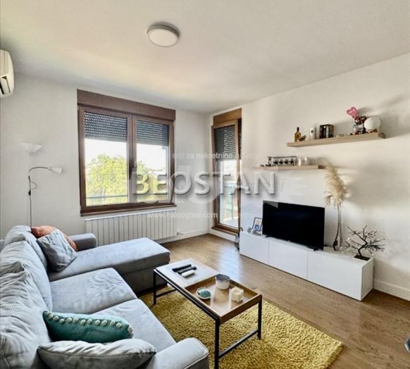 Stan od 50m2 ,renoviran, lux, u novom naselju, škola na 100 metara, vrtić pored škole, u blizini pošta, apoteke, pekare, bifei itd,bus 49- autobusko stajalište ispred same zgrade, na 400 metara tramvaj i više bus linija. Zgrada ima lift, stan ekskluzivno opremljen, klima, KTV sa internetom , TV u dnevnoj i spavaćoj sobi, grejanje centralno-po utrošku, mašina za pranje i sušenje veša, zgrada čista, blind vrata, ima video nadzor, stan se izdaje na duži period (najmanje godinu dana), pogodan za mladi bračni par.Useljiv od 05.januara 2026.godine, može se pogledati pre. Mesečne režije 50eura. Napomena: Ostvaruje se pravo za Infostan na umanjenje 30%. Agencijska provizija 50%