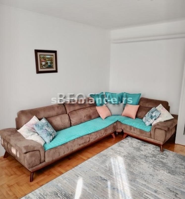 Stan od 50m2 ,renoviran, lux, u novom naselju, škola na 100 metara, vrtić pored škole, u blizini pošta, apoteke, pekare, bifei itd,bus 49- autobusko stajalište ispred same zgrade, na 400 metara tramvaj i više bus linija. Zgrada ima lift, stan ekskluzivno opremljen, klima, KTV sa internetom , TV u dnevnoj i spavaćoj sobi, grejanje centralno-po utrošku, mašina za pranje i sušenje veša, zgrada čista, blind vrata, ima video nadzor, stan se izdaje na duži period (najmanje godinu dana), pogodan za mladi bračni par.Useljiv od 05.januara 2026.godine, može se pogledati pre. Mesečne režije 50eura. Napomena: Ostvaruje se pravo za Infostan na umanjenje 30%. Agencijska provizija 50%