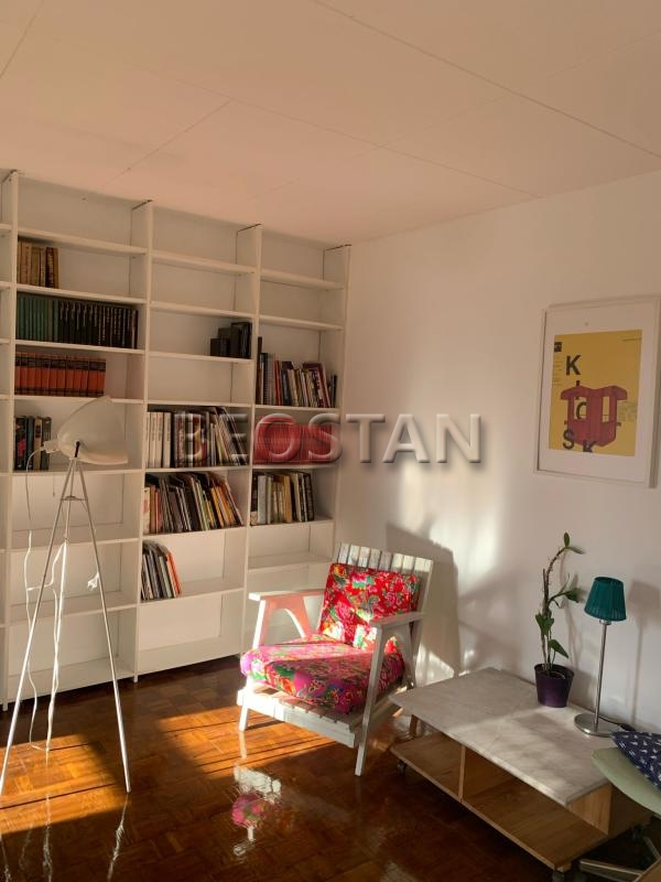 Stan površine 84 m2 u centru Beograda u lepoj i mirnoj ulici Majke Jevrosime na četvrtom spratu, u zgradi sa četiri sprata i liftom. Stan je dvostrano orijentisan i sa jedne strane gleda na ulicu, a sa druge na dvoriše zgrade tako da je tokom celog dana svetao i osunčan. Na svakom spratu su po dva stana i u zgradi je uvek mirno i tiho. Stani ima tri velike prostorije,kuhinju,kupatilo,dva hodnika i tri terase. Visina plafona je 3m i grejanje je centralno. Prostor je kompletno renoviran uključujući kupatilo,kuhinju,električne i vodovodne instalacije kao i hoblovan parket. Lokacija je dobro povezana sa gradskim prevozom, a u slučaju ličnog prevoza u neposrednoj blizini se nalaze javne garaže. Za poslovni ambijent je prijatna atmnosfera. Agencijska provizija 50% od prve zakupnine.