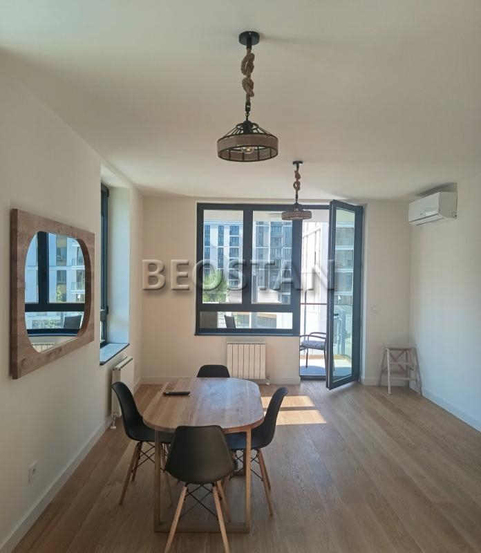 IZDAJE SE – Luksuzan stan 80 m² sa garažom, 2 spavaće sobe, 2 kupatila, Beograd na vodi – zgrada Skala Cena: 1.800 EUR/mesec (uključeno garažno mesto) Izdaje se ekskluzivan, u potpunosti opremljen stan površine 80 m², smešten u prestižnoj zgradi Skala u kompleksu Beograd na vodi. Stan je pažljivo projektovan i opremljen najsavremenijom tehnikom i luksuznim nameštajem izrađenim u punom hrastu, što pruža vrhunski komfor i eleganciju. Struktura i oprema: Dve komforne spavaće sobe Dva moderno opremljena kupatila Prostrana dnevna soba sa kuhinjom i trpezarijom Terasa Stan je kompletno namešten. Kuhinja, kreveti i sav nameštaj izrađeni u hrastu. Najsavremenija bela tehnika i uređaji. Kvalitetna stolarija i završna obrada Garažno mesto u podzemnoj garaži uključeno u cenu Lokacija: Beograd na vodi – zgrada Skala, u neposrednoj blizini šetališta, reke, tržnog centra Galerija, restorana, kafića i parkova. Uslovi zakupa: Cena: 1.800 EUR mesečno Depozit: jedna mesečna zakupnina Minimalan period zakupa: po dogovoru Agencijska provizija: 50% od prve mesečne zakupnine Za više informacija i zakazivanje obilaska, stojimo vam na raspolaganju.